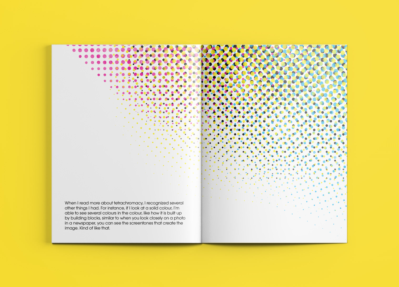 Some of the spreads designed for the Tetrachromacy chapter.