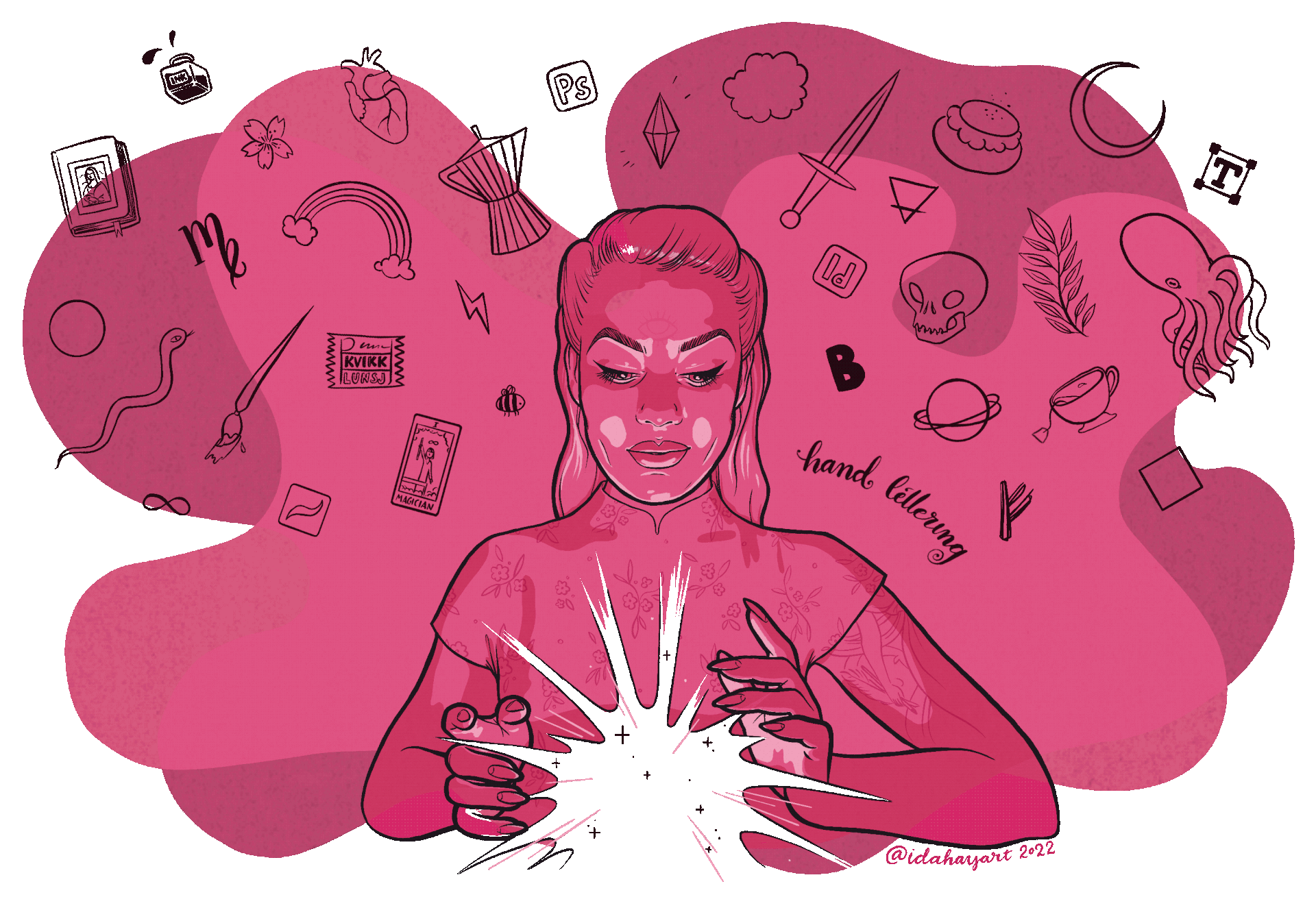 With my likely tetrachromatic vision, colour isn’t just a tool. It’s my superpower. I work with strong linework and rich narrative, drawing from Scandinavian heritage and folding it into a modern, magical sensibility. Think Art Nouveau meeting rebellious expression, somewhere between Pippi Longstocking and the Addams Family, with a trace of mysticism and vintage soul.