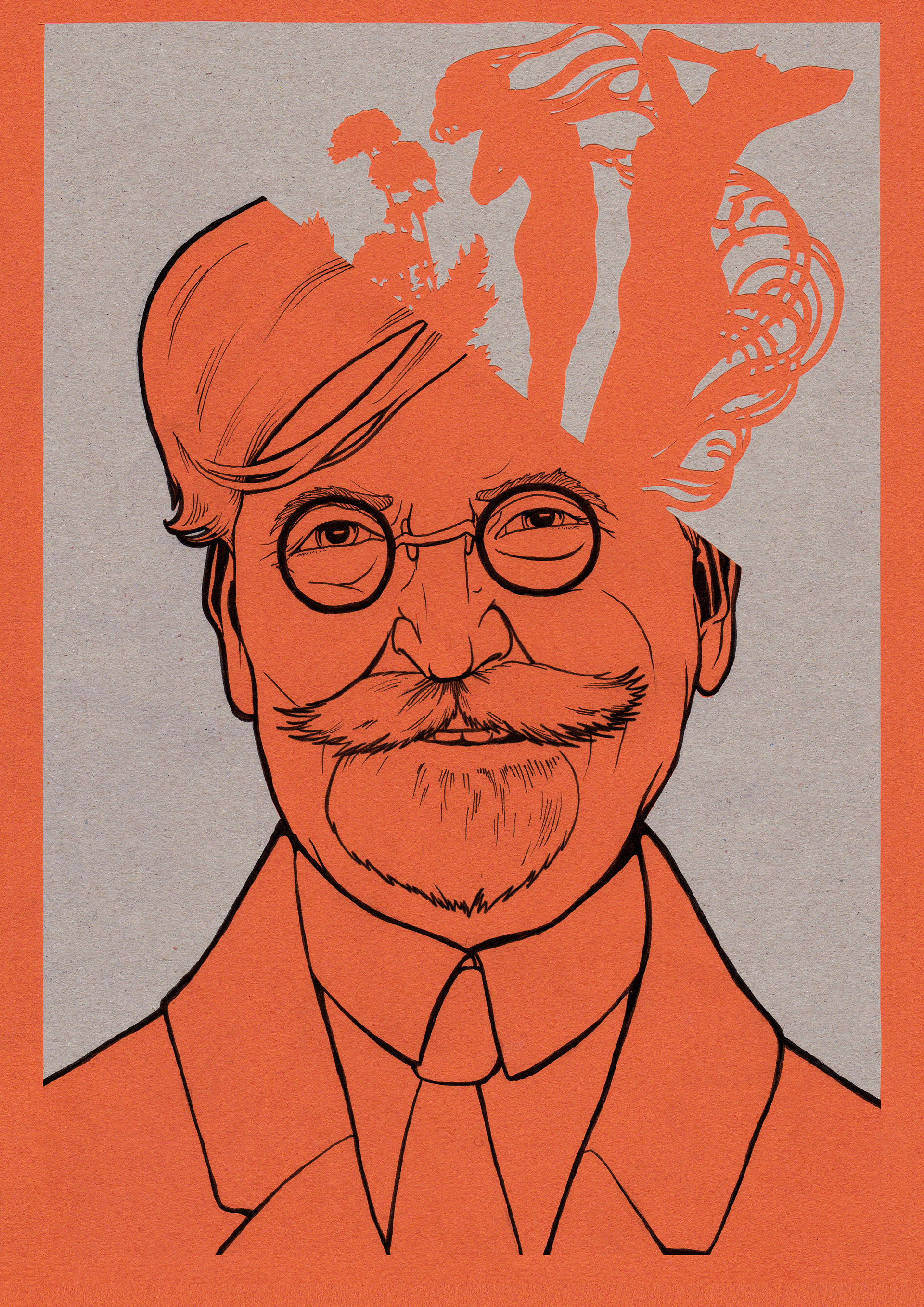 Ink and papercutting series of pop culture heroes: Tim Burton, Alphonse Mucha and Haruki Murakami.