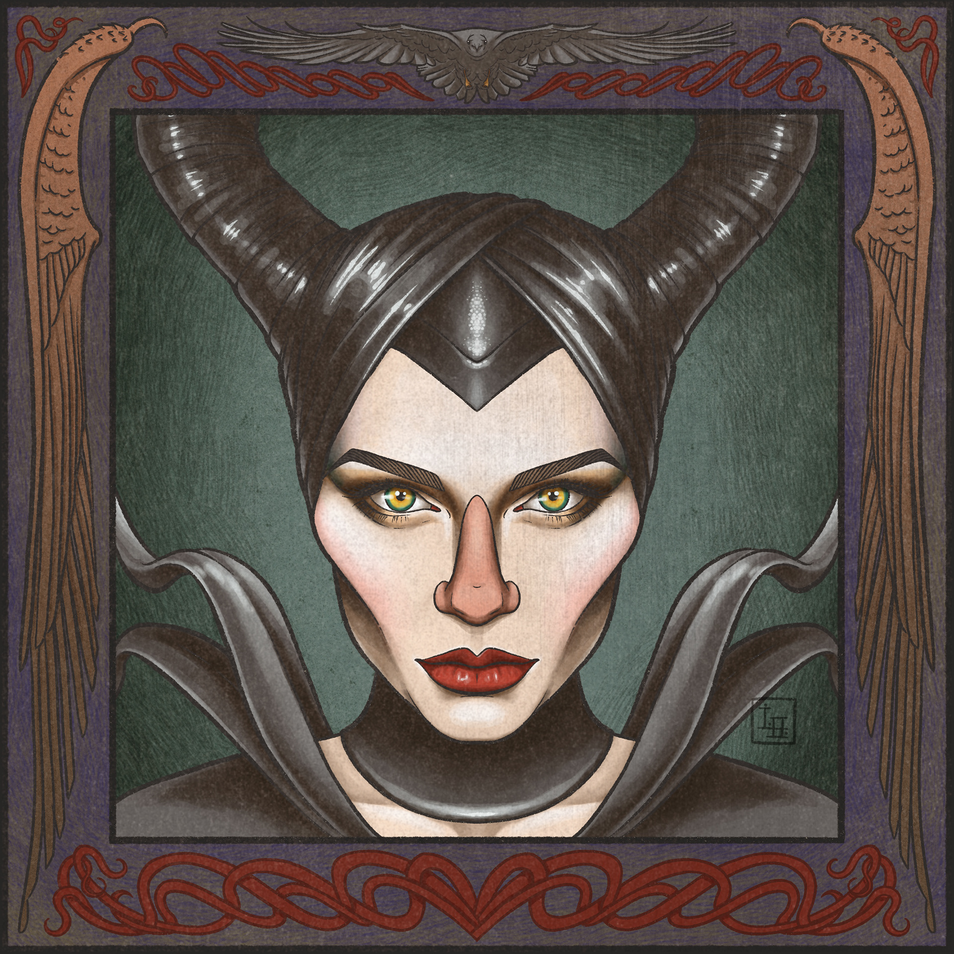 Above: Day 25: Horned — and process video. Inspired by the movie Maleficent (2014)