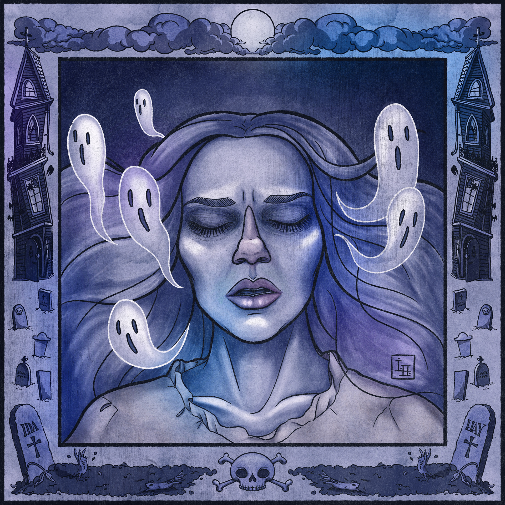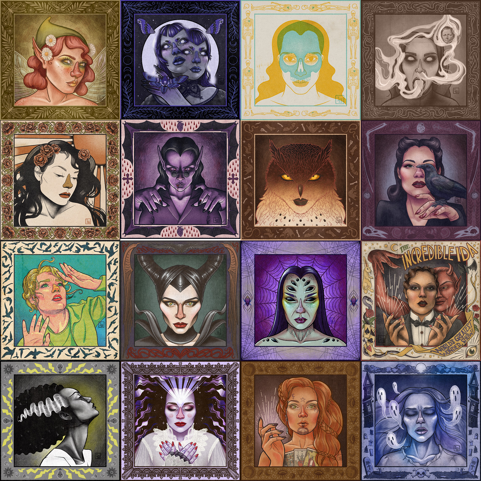 This self portrait series is inspired by a set of Halloween themed drawing prompts. I've kept the original drawing prompt as the name for each individual piece, to help show the general idea and perhaps recognition in some cases. Every piece is created in Procreate on iPad.