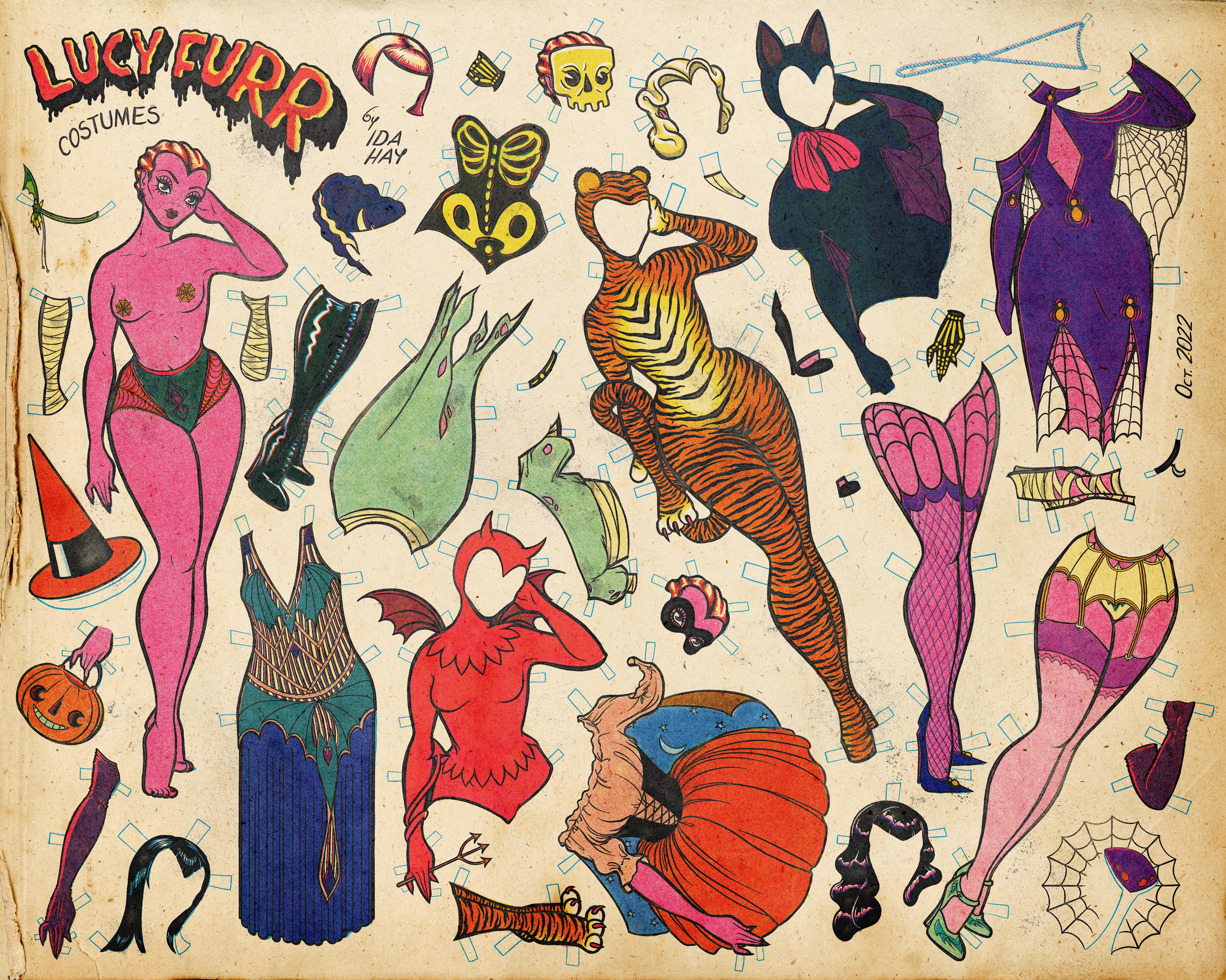Lucy Furr is the perfect middle between old Halloween art, costumes and the classic paper dolls that could be found in women's magazines and comic books.